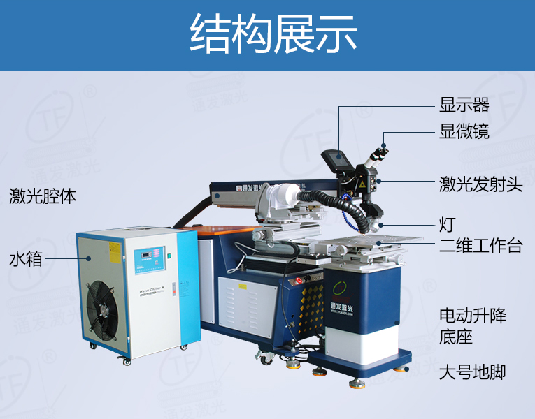 • 通發(fā)激光一體式模具激光焊機(jī)TFL-400YT是一款多種功能融合一體的新型模具激光焊接機(jī),針對特大型塑料模具激光焊、中型注塑模具激光燒焊、小型塑膠模具激光補(bǔ)焊、壓鑄模激光補(bǔ)焊
